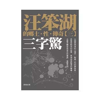 《三字驚》收錄二十篇短篇小說,提醒悠悠眾生因果循環報應不可輕忽,警世意味濃厚。<戰颱風>女司機正是少婦風韻,全身散發出成熟妖豔,尤其是細手不斷推撫著粗具的排檔桿,他不禁喘氣、泌汗,褲檔堅實挺起暗地意淫著……<火燒心>用力扯掉酒女胸衣,兩粒突顯的乳?迎面示威而來,黑仔彷若一眼看穿那凹陷心坎裡正煨煲一顆鮮紅的良心……<賣鷹店>在床上一男一女的兩具裸屍,從頭到腳被鷹?爭相啄得血肉糢糊、肚破腸流,宛如恐怖的阿鼻地獄……<三字驚>自殺者突然神智錯亂,從喉底迸出「破!破!破!」三字驚語,大量泡沫狀鮮血由鼻孔嘴巴急噴而出……
